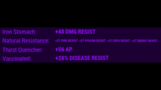 Resistenza naturale: aumenta le resistenze elementali (+27) Guerra alla sete: aumenta gli AP massimi (+56) Vaccinato: aumenta la resistenza alle malattie in base alla COS (+28%) Salvo non cambino qualcosa dal PTS attuale (by Maxwell e KaotikPaladin) |